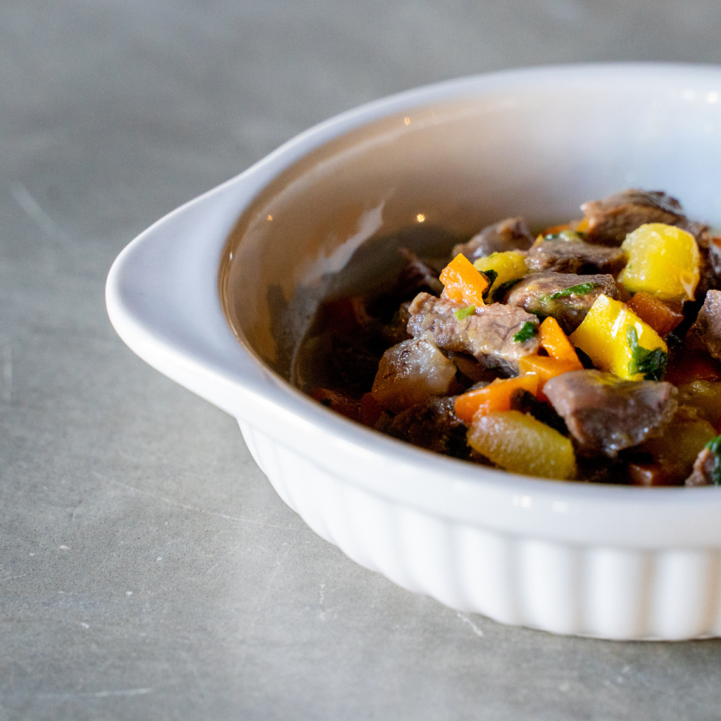 香りが立ちやすい国産鹿肉を、やわらかく煮込みました。