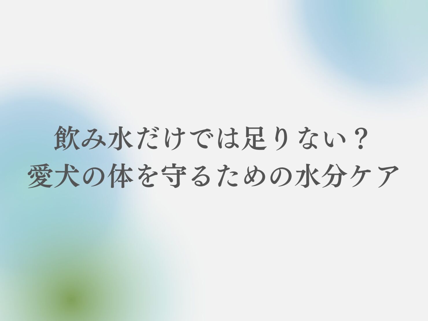 けれど水分は、犬の体のあらゆる働きを支える基盤です。